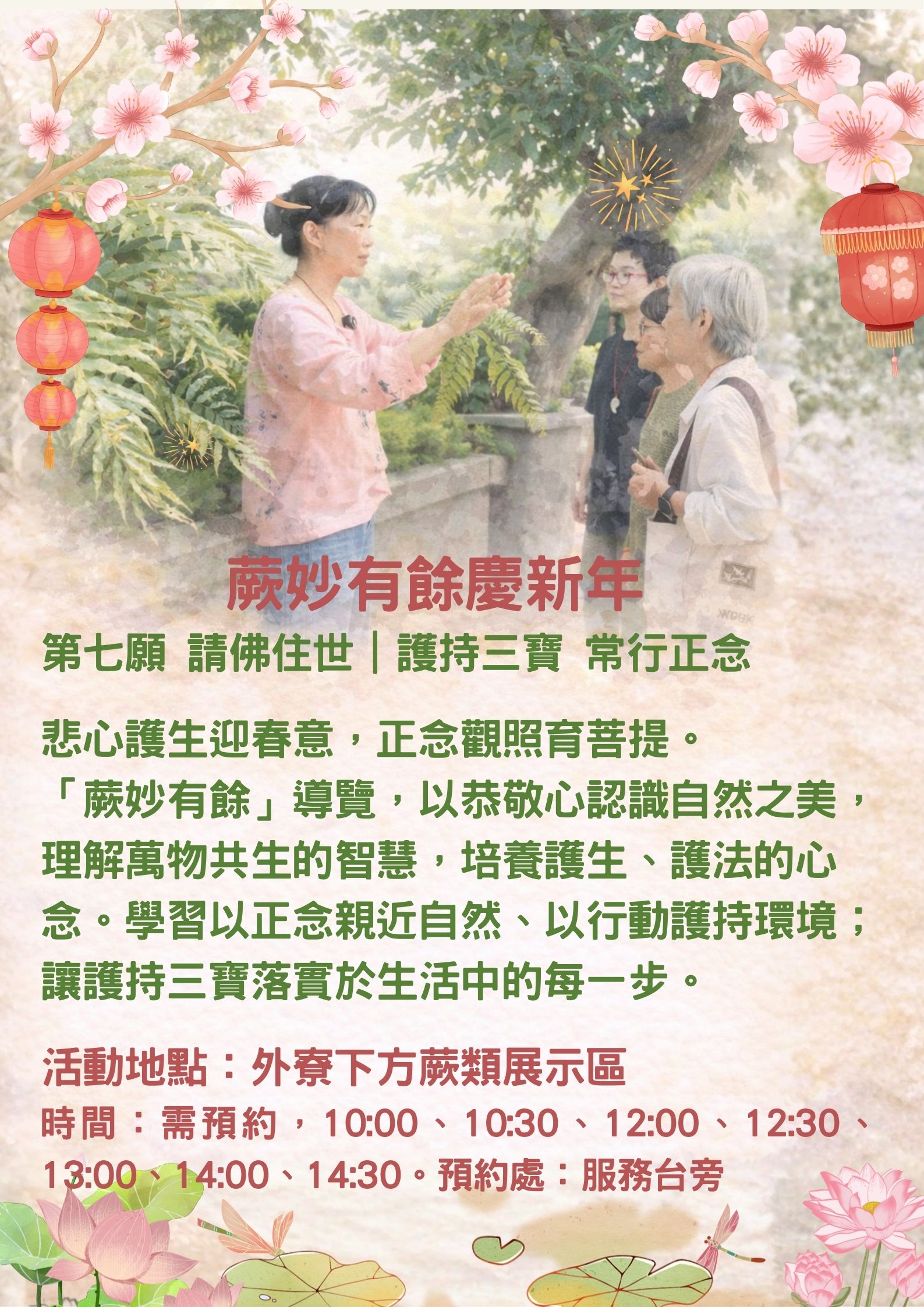 踏進「蕨妙有餘」展示區,觀察萬物共生的智慧,體會自然之美。學習以恭敬心守護萬物,從中培養護生護法之心,實踐護持三寶的願行。