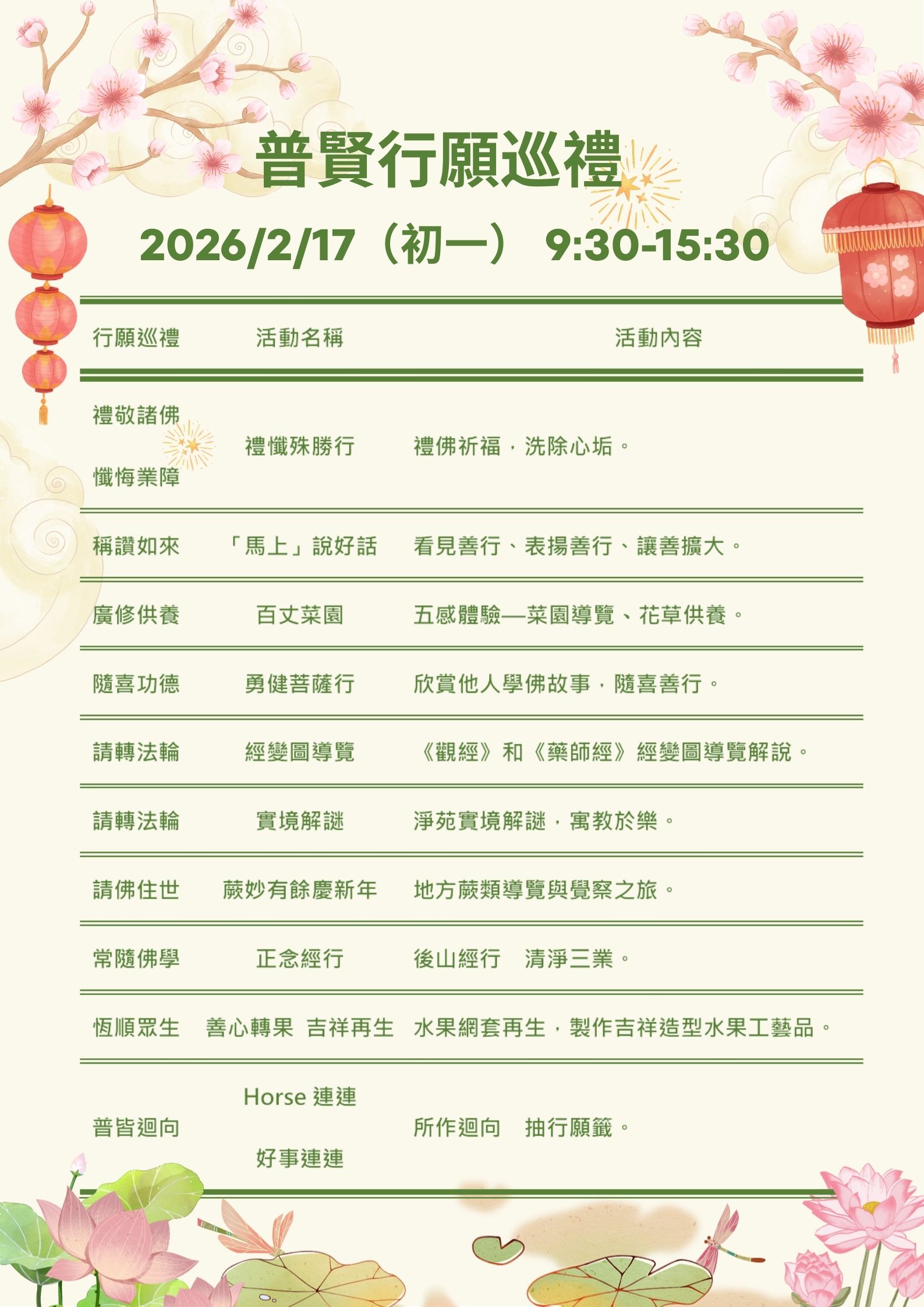活動名稱:馬年行願・逗陣來—— 新春初一 普賢行願巡禮