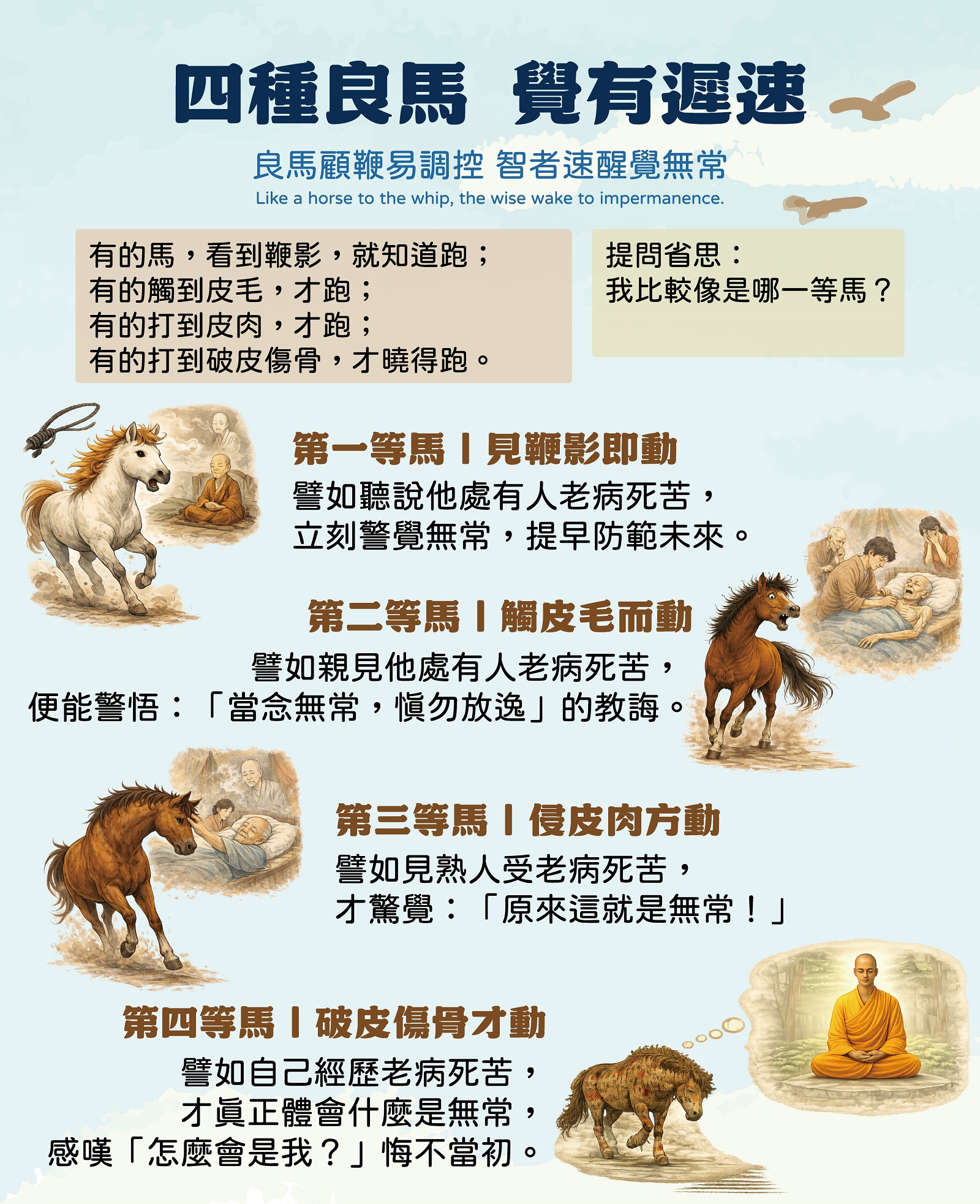 良馬顧鞭易調控,智者速醒覺無常。