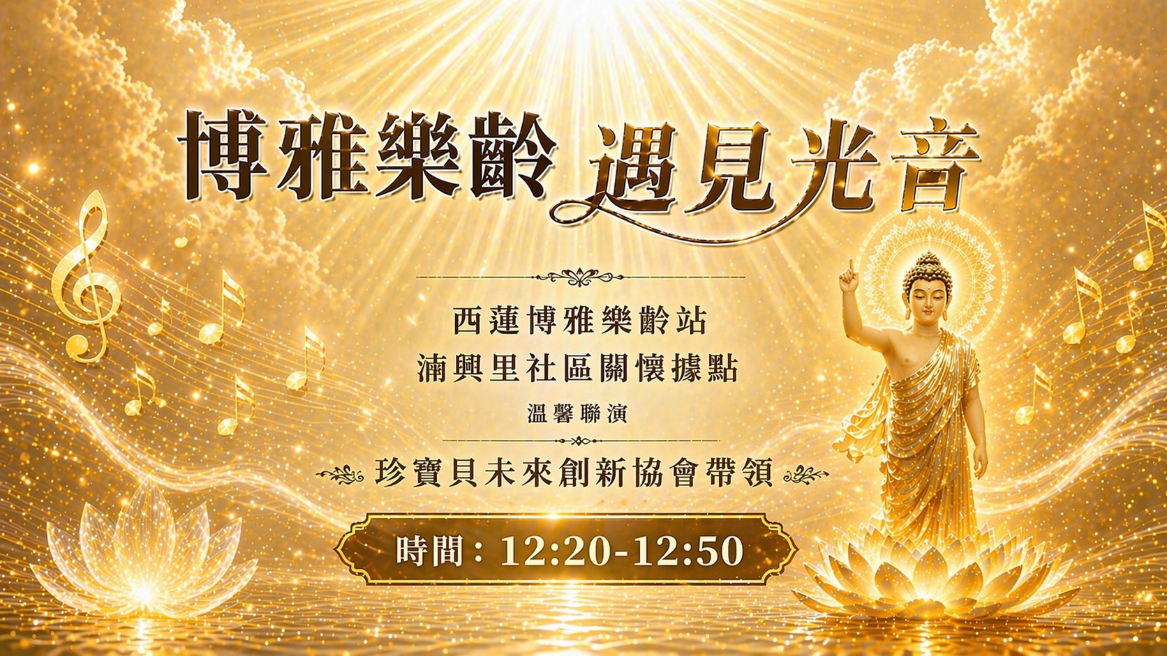 以劇場形式,演繹佛陀生命歷程。透過故事鋪陳與互動情境,引領大眾走入佛陀成道之路。內容生動活潑,老少咸宜;認識佛陀由迷轉悟的過程,啟發內在覺性。