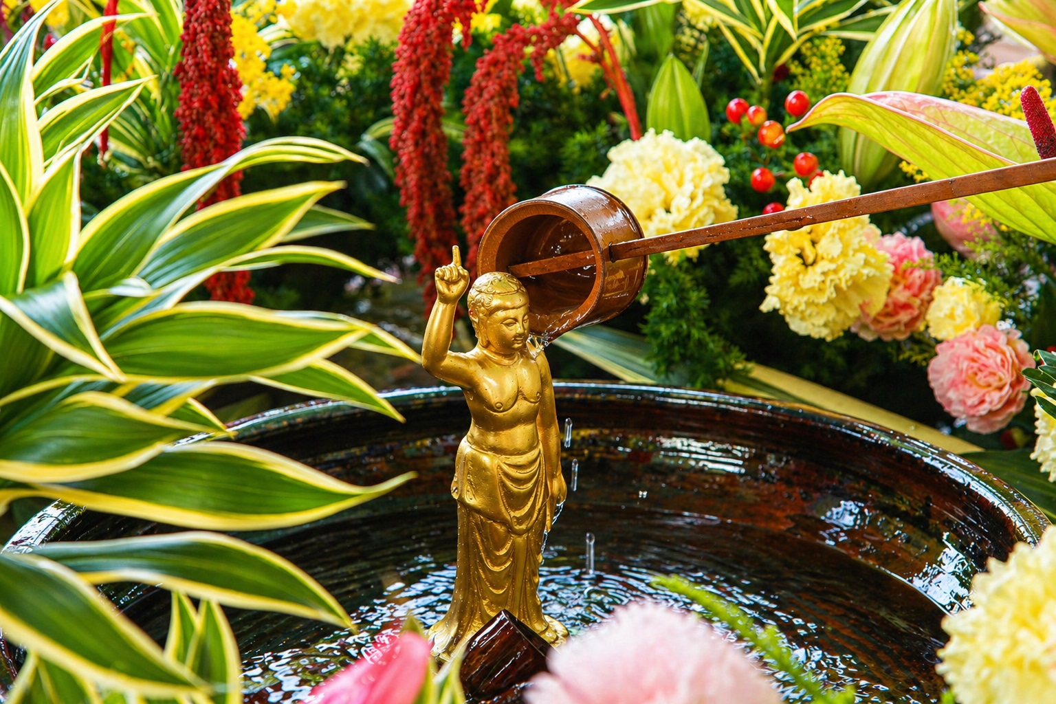 以淨苑花草為材,親手調配浴佛茶;正念領受花草芬芳,宛如甘露灌沐身心,沐浴佛恩。一念專注,一心恭敬,花草婆娑之間,隨茶湯澄明,回歸清淨本心。